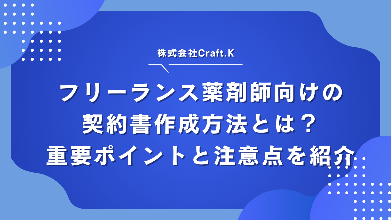 フリーランス薬剤師向けの契約書作成方法とは?重要ポイントと注意点を紹介